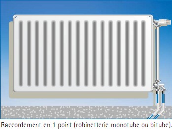 Il existe plusieurs types d’alimentation pour radiateurs, nous pouvons alimenter un radiateur avec robinet a droite ou gauche en partie supérieure, puis le coude ou té de réglage en partie basse a l’opposé du robinet mais aussi du même coté que le robinet. Voir toutes les possibilités→