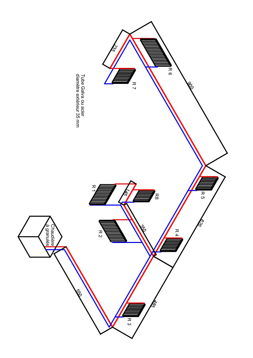 Je vous joins un plan du circuit actuel (les radiateurs R1 et R2 sont au RDC).