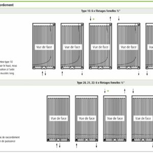 Il y a 6 raccords de connexion et j’aurai voulu utiliser les raccords centraux en aller et retour en inversant le sens du radiateur puisque les tuyaux vont venir du grenier.