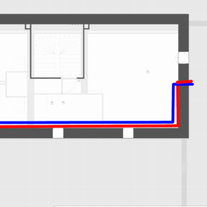 Dans mon idée, le réseau partirait de la chaufferie, et suivrait le réseau de chauffage qui monte au deuxième étage dans les combles, pour une distribution en pieuvre. Celui-ci est actuellement dans un coffrage qui longe trois coté de la maison.
