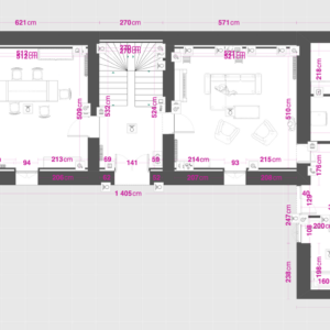 La c’est le 2eme étage et le RDC avec les dimensions si cela peut aider