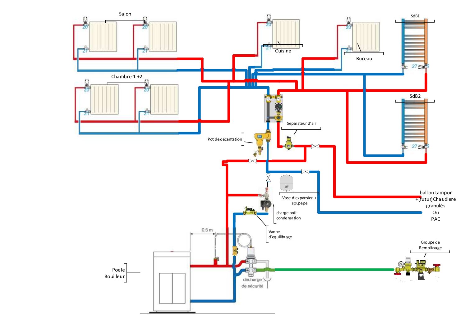 4) Le vase d’expansion doit-il être au plus près du bouilleur comme sur le schéma ou plutôt à coté du BT? (j’ai cru comprendre qu’il était interdit d’avoir 2 vases d’expansions sur la même installation?)Je suis preneur de toutes vos remarques et suggestions!