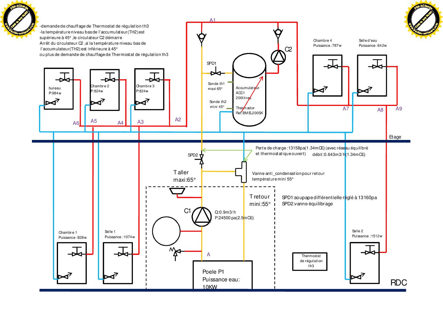 Personellement je placerais une électrovanne a la place du SPD1 piloté par thermostat sur le retour des radiateurs.