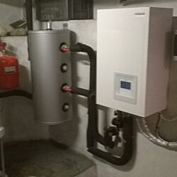 L’installation première était une véritable catastrophe et j’ai dû intervenir .Le simple démontage s’est fait dans une mare d’eau et de suie que j’ai dû nettoyer pendant deux semaines avec l’aide d’amis .J’ai fait refaire deux fois toute l’installation sans modifier les trous et percements déjà faits pour en arriver à cette installation . Le ballon d’eau chaude sanitaire lui-même était très incliné et prêt à tomber un jour ou l’autre . , C’est pourquoi je me méfie de cette société dont les installateurs ont de la bonne volonté mais sont tout simplement incapables , incompétents et non professionnels . Je leur ai dit !