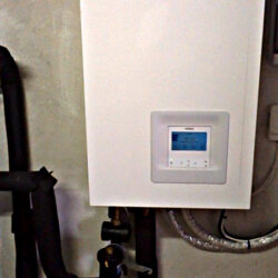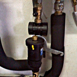 Le radiateur situé dans la salle à manger est en aluminium (les autres sont en fonte) et résonne du bruit de l’échangeur (?) en gris sur les photos , situé à la cave à au moins plus de 15 m . Çà ,l’installateur n’en avait pas fait mention et pour lui ,cela ne poserait aucun problème sauf qu’il y a désormais un bruit permanent dans ce radiateur .La maison est chauffée par des radiateurs qui n’arrivent pas à être aussi chauds qu’avec la chaudière .Avant ,ils pouvaient être très chauds .Aujourd’hui ,on pourrait s’asseoir dessus .La main ne risque pas de chauffer..Cela explique pourquoi il faut tant de temps pour monter de deux degrés .