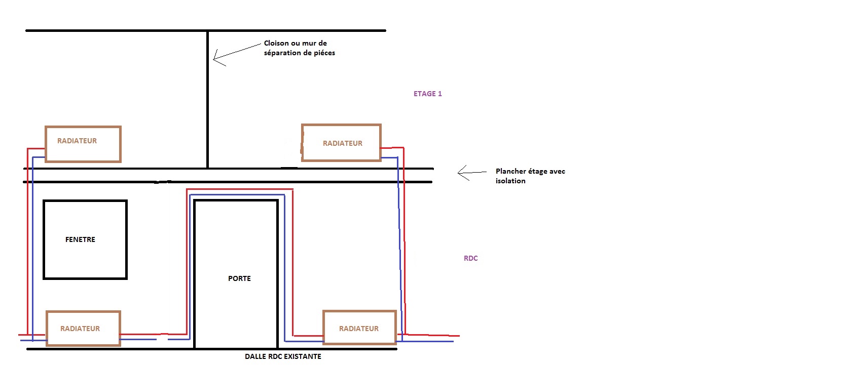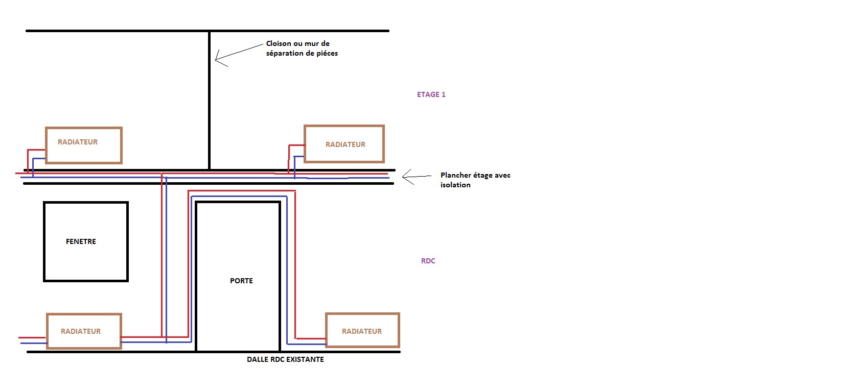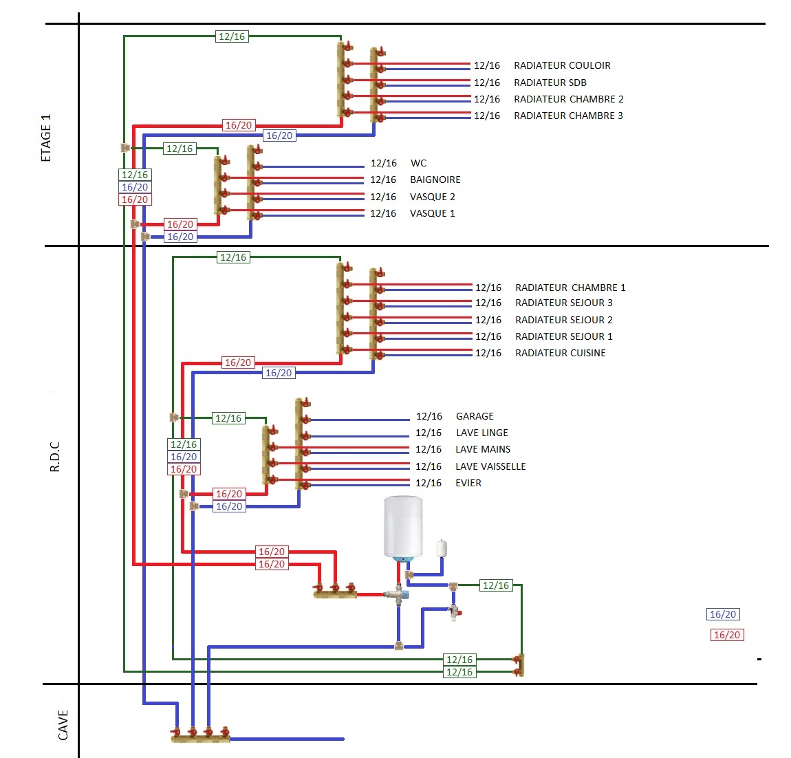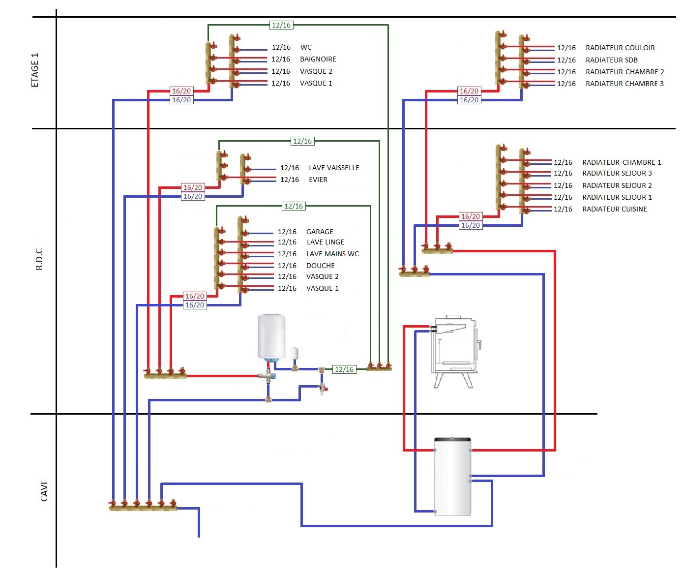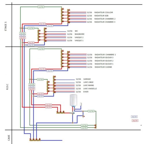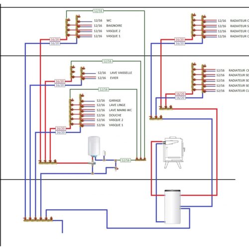 Pour le schéma, je compte sur vous, pour ne pas faire comme sur le schéma, les réseaux d’eau et de chauffage sont complétement séparés ce qui n’est pas le cas sur le schéma…