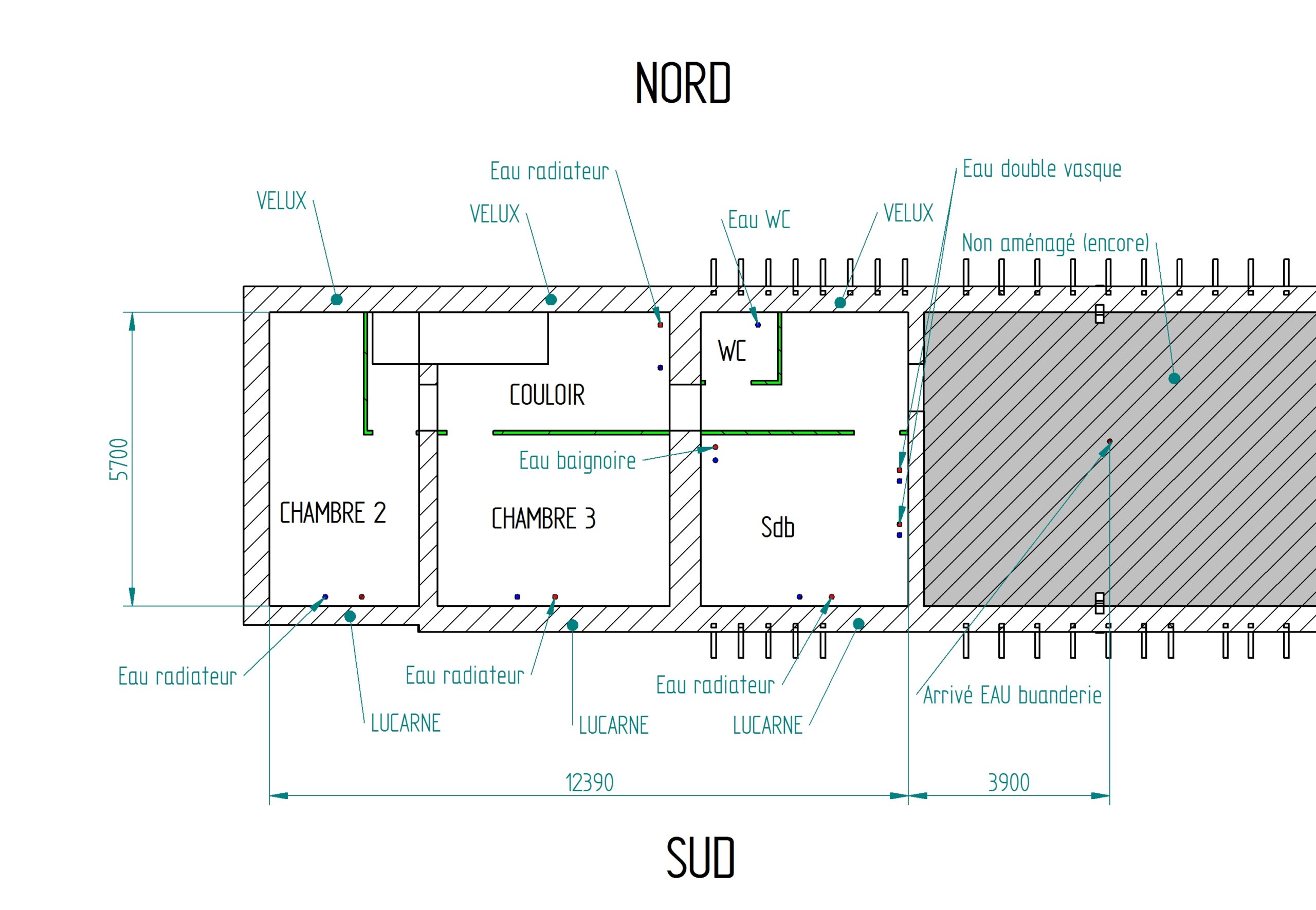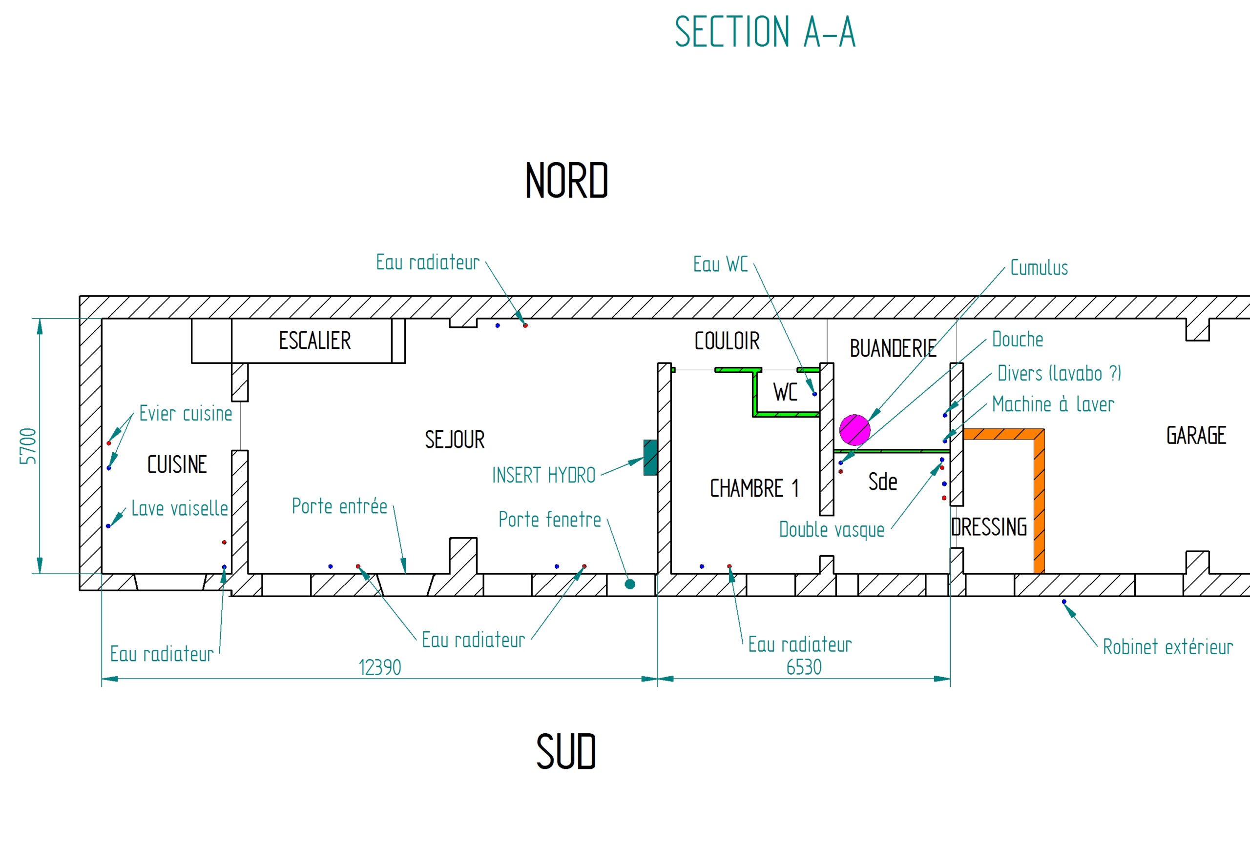 Le réseau est complètement à refaire donc je ne tient pas compte pour le moment du réseau existant.J’ai besoin de refaire mon plancher à l’étage dans un premier temps, or je ne voudrais pas oublier la plomberie et les évacuations.