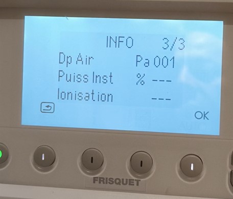 Pour le menu où voir la valeur de capteur d’air il faut appuyer 5 secondes sur 2 boutons donc il y a le premier (on/off), le 2ème (menu), le 3ème (info), le 4ème (pour moi mode ECS éco/max) et le dernier (mode auto pour le chauffage) et après 2 boutons superposés + et -.