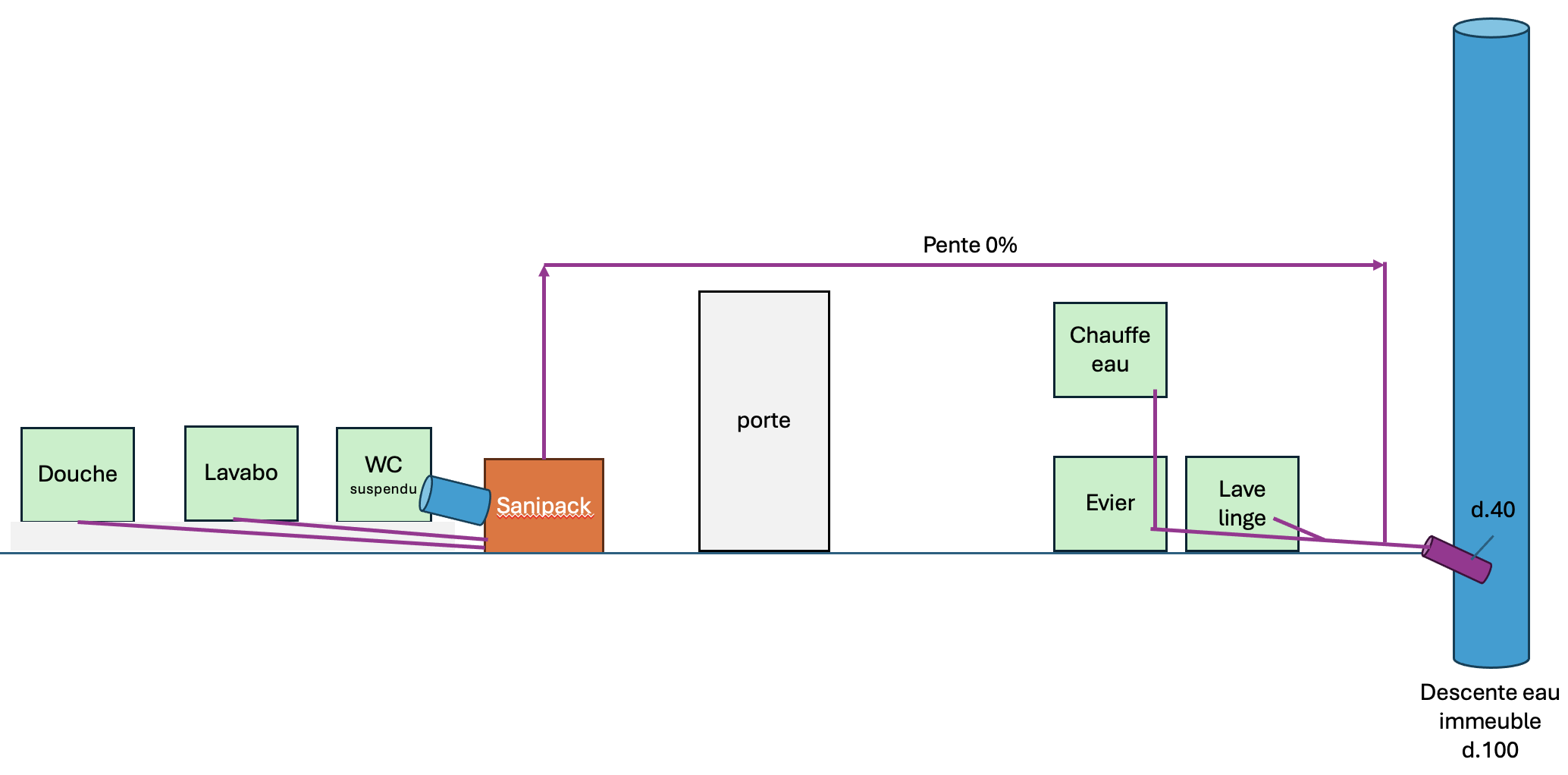 Avant de me lancer dans la rénovation d’un petit studio dans un immeuble ancien, je vous sollicite pour valider mon installation d’évacuation des eaux usées/vannes.