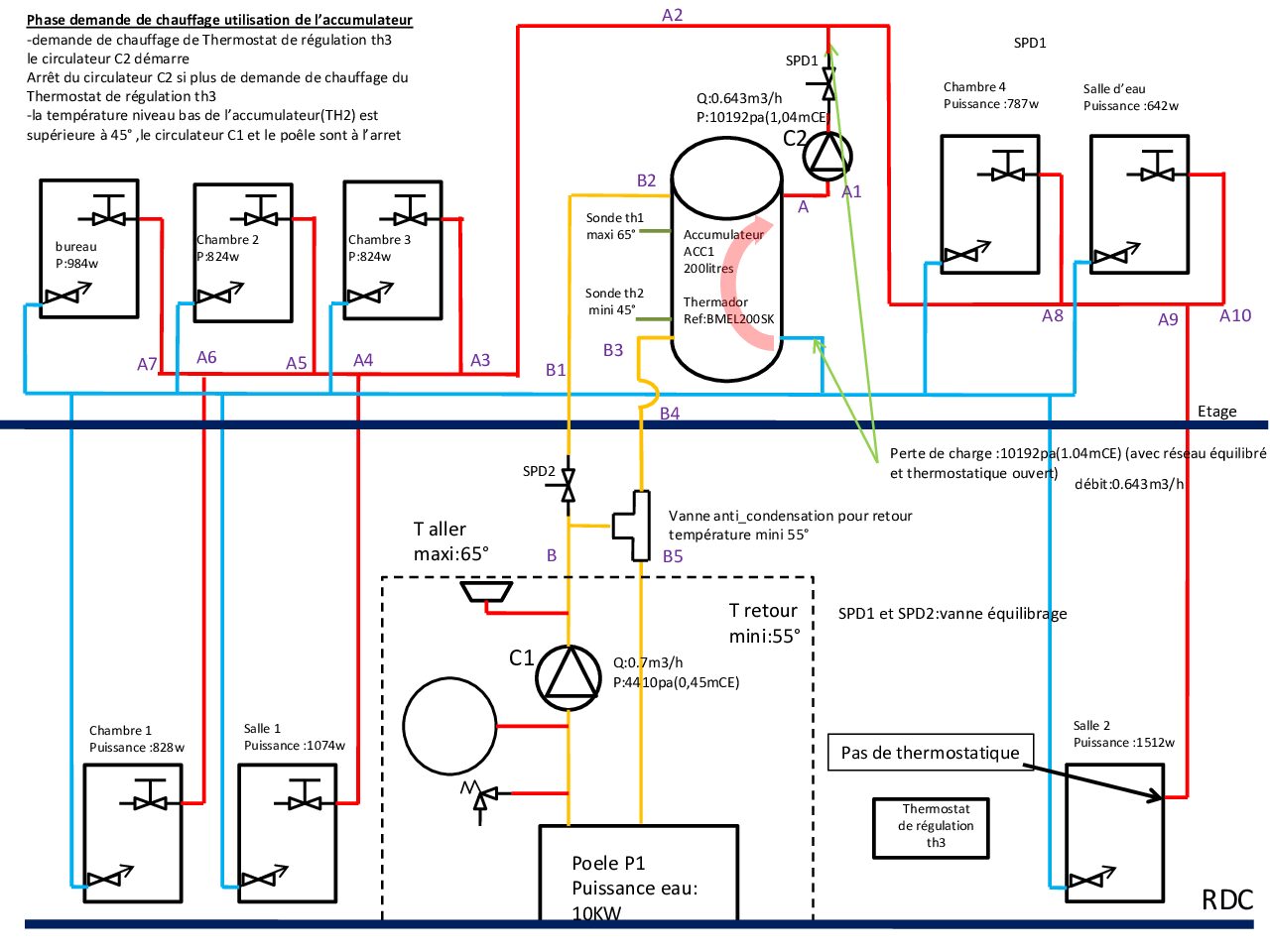 le poêle démarrera avec la sonde th2 si la température est inférieure à 45c° et il s’arrêtera avec la sonde th1 si la température est supérieure à 65c°.