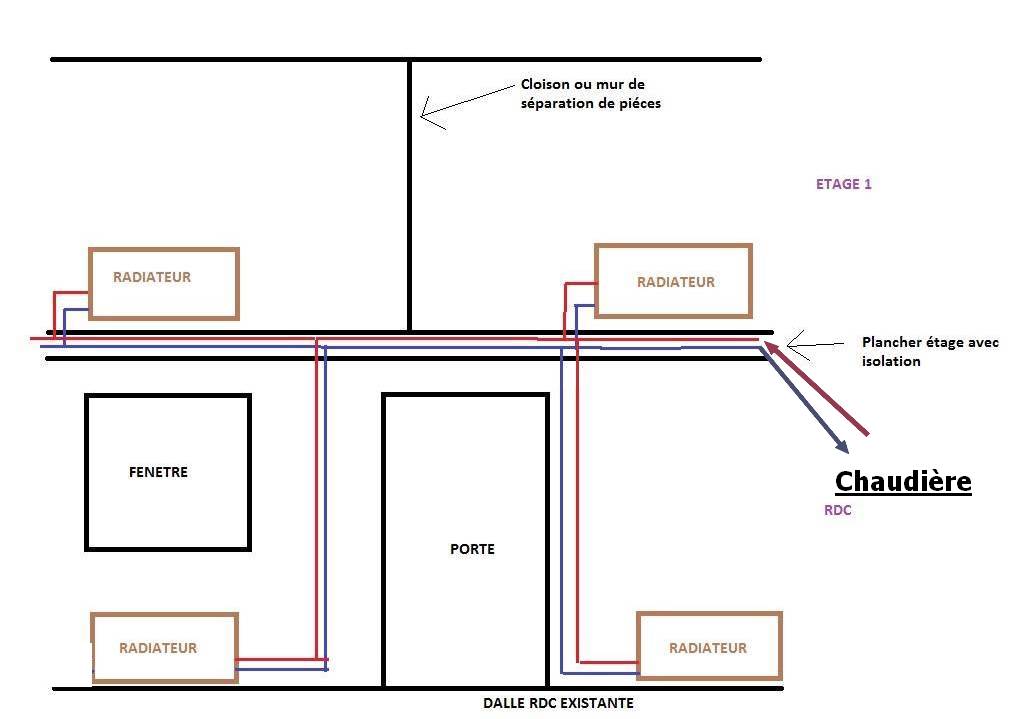 [*]Remontent du sous-sol au premier étage pour alimenter un dernier radiateur en fonte .[/*]Je vous confirme que je n’ai absolument aucun bruit, sans aucune soupape différentielle ni rien d’autre, juste une chaudière murale avec un thermostat, tout a été fait avec des tuyaux cuivre de diverses sections avec des picages comme dans votre cas.