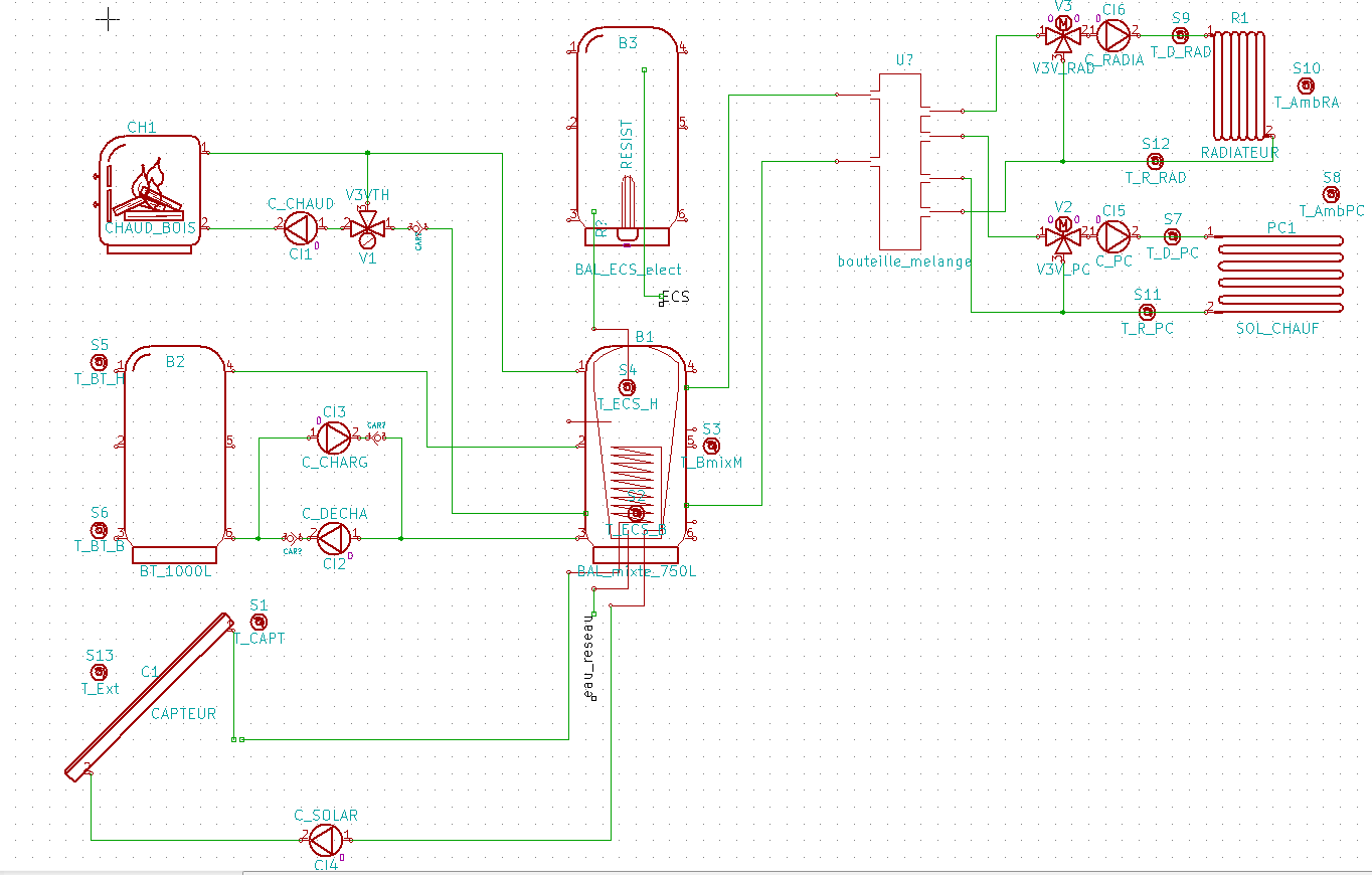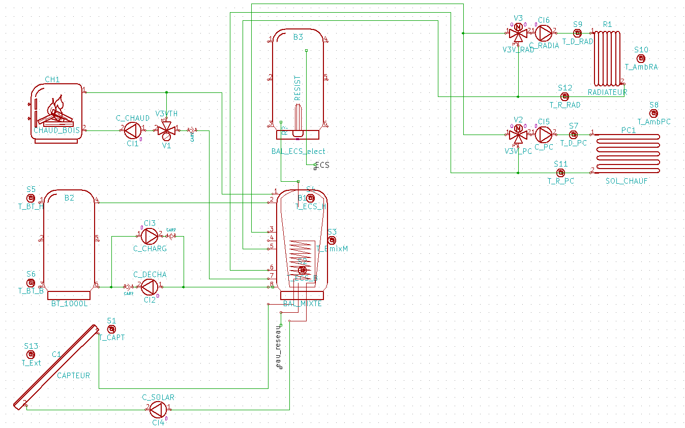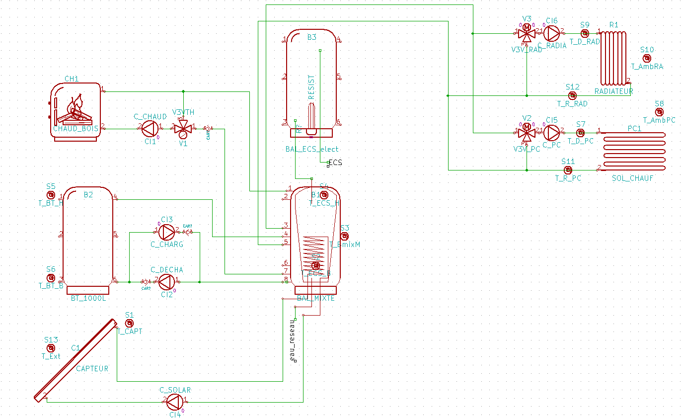 j’ai modifié mon schéma mais toujours piquages chauffages sur le ballon mixte.