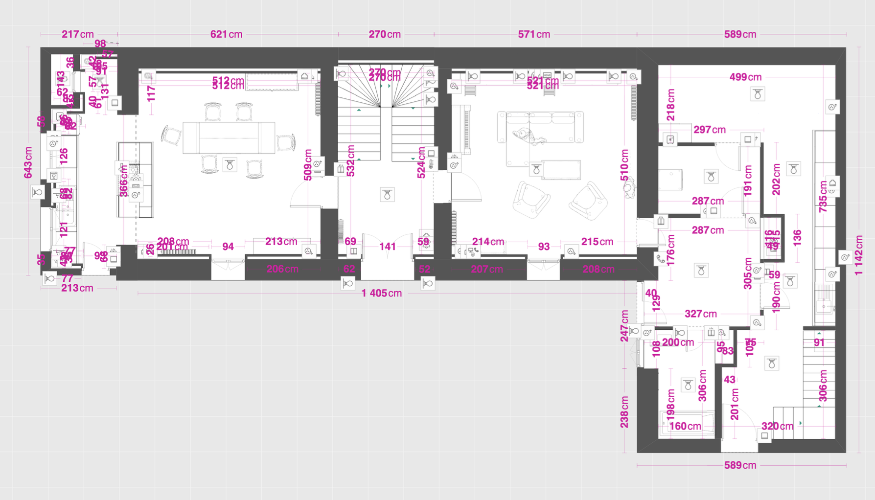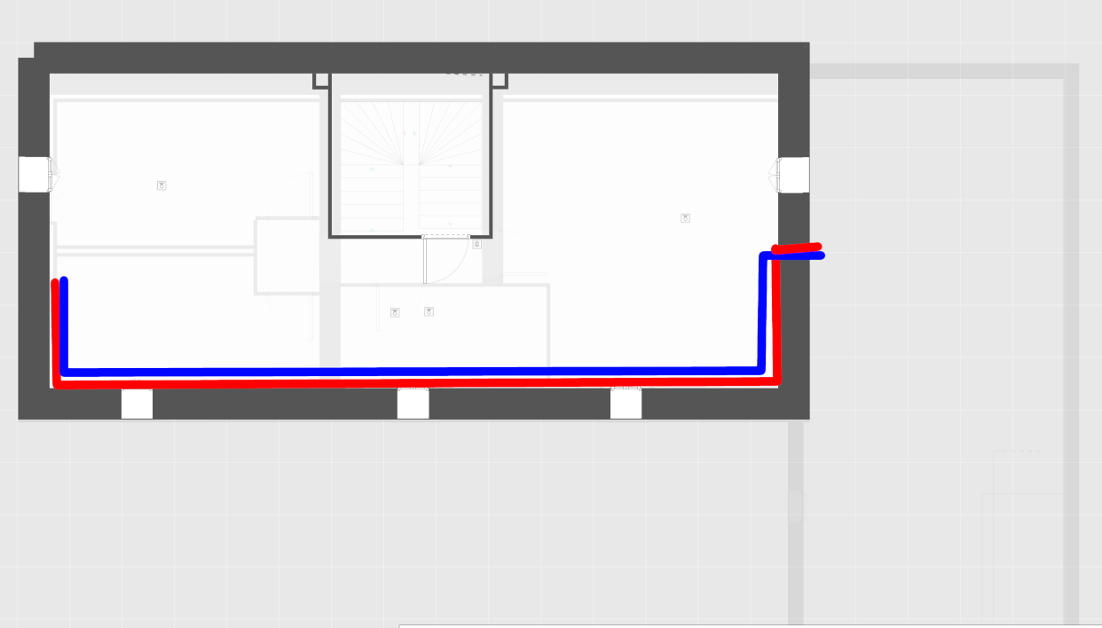 Pour les longueurs, si je passe en direct au droit, j’ai 23m pour le point le plus loin, si je passe par les combles, j’ai 29m.