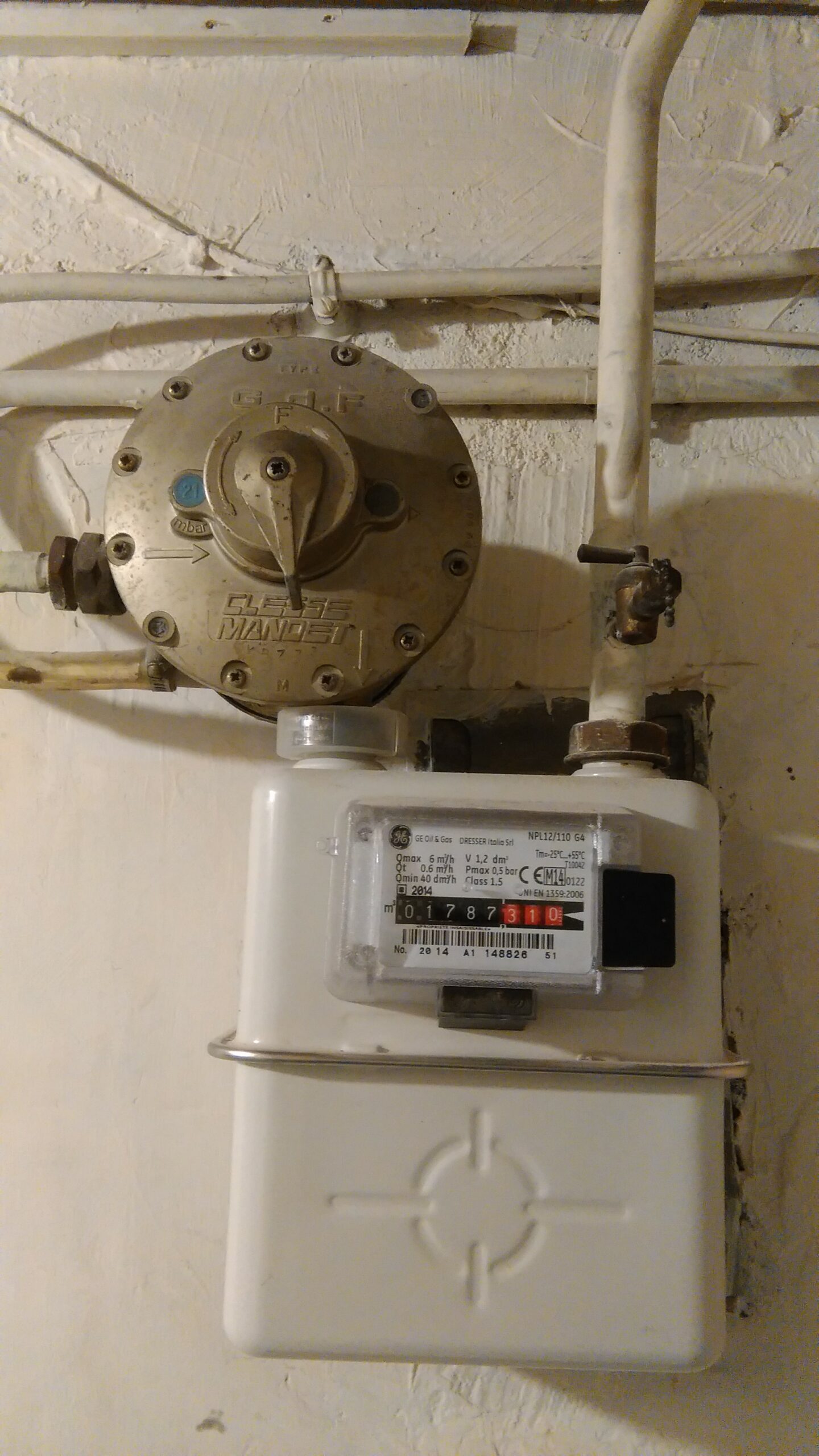 Je suis vraiment soulagé ☺Autre difficulté. J’ai un tuyau en cuivre qui part du compteur du gaz au-sous sol (détenteur de marque Clesse Mandet), monte à la salle de bain et enfin sort à l’extérieur de la maison à 2m20 d’hauteur, comme montré dans la photo.