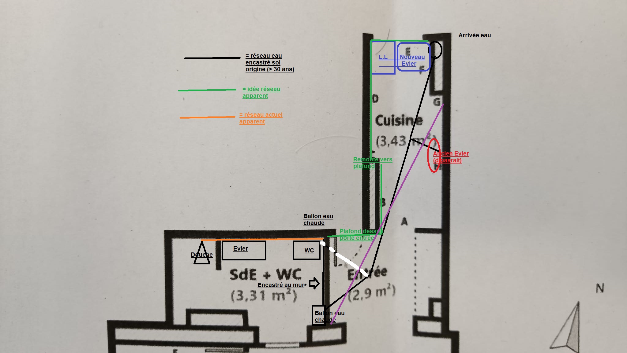 09/11/2024 à 18h54 en réponse à : Conseil pour refaire une installation d’eau dans un studio (cuivre ou #60965Merci pour ta réponse et les précisions. Je mets en pièce jointe le plan du studio avec l’affectation des pièces concernées, l’emplacement des points d’eau actuels et futurs, ainsi que des éléments comme la chaudière et les canalisations. J’espère que cela pourra aider à mieux comprendre la configuration.