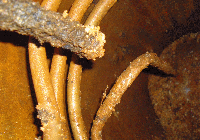 Sur le bloc résistance on constate la corrosion des fourreaux ainsi que la formation de tartre a cet emplacement.