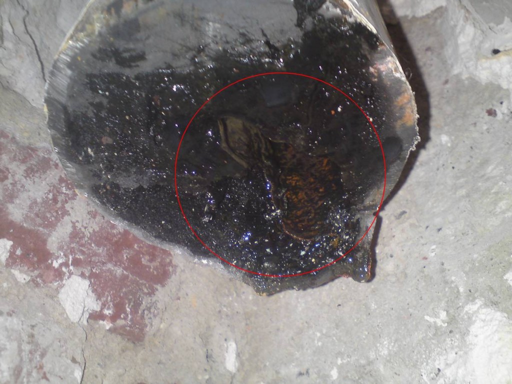 Inutile de se faire des idées, ce n’est que du tartre qui s’est cristallisé par l’utilisation des produits de débouchage, qui sont complètement inefficaces dans ce genre de cas, la seule solution c’est le grattage complet comme on peut le voir dans l’image suivante.