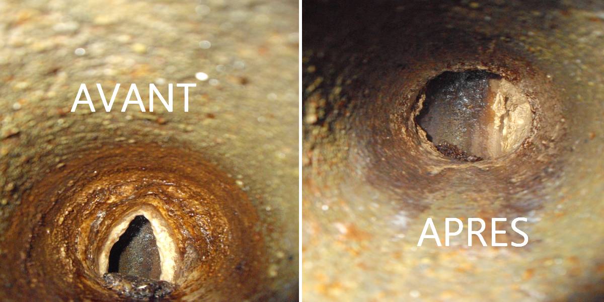 Normalement les réseaux collectifs doivent être curés périodiquement afin de laver le tuyaux par l’intérieur.