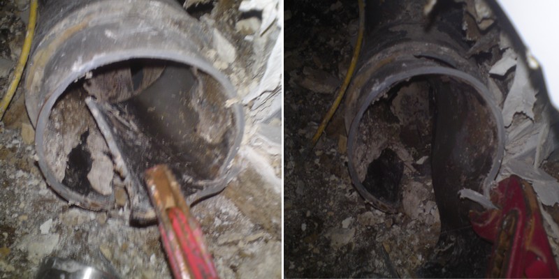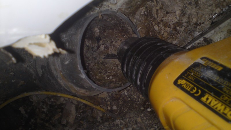 Cette procédure de décollage doit être faite sans eau, s’il y a de l’eau qui coule en permanence, il est impossible de décoller le PVC et cela quelque soit le matériel utilisé, car même au chalumeau oxyacétylénique vous n’arriverez pas a atteindre la température nécessaire au décollage du PVC.