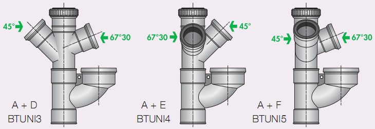 Contrairement au PVC standard, il est possible de raccorder plusieurs appareils sanitaires au même niveau, comme par exemple, deux WC et tous les autres appareils standard pour une salle de bains complète.