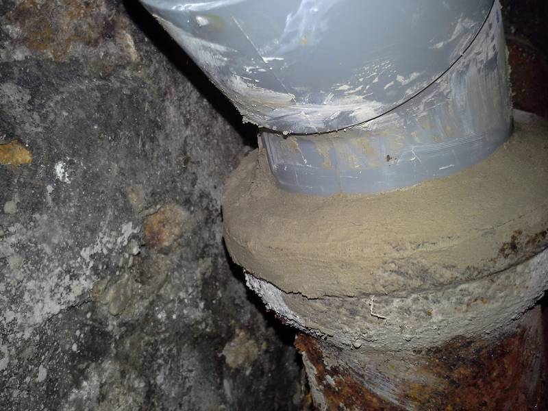 Précautions en cas de raccordement d’un PVC de petit diamètre. Attention a ce que le PVC ne rentre pas trop loin dans la fonte, il pourrait gêner le bon écoulement voir même boucher la canalisation principale.