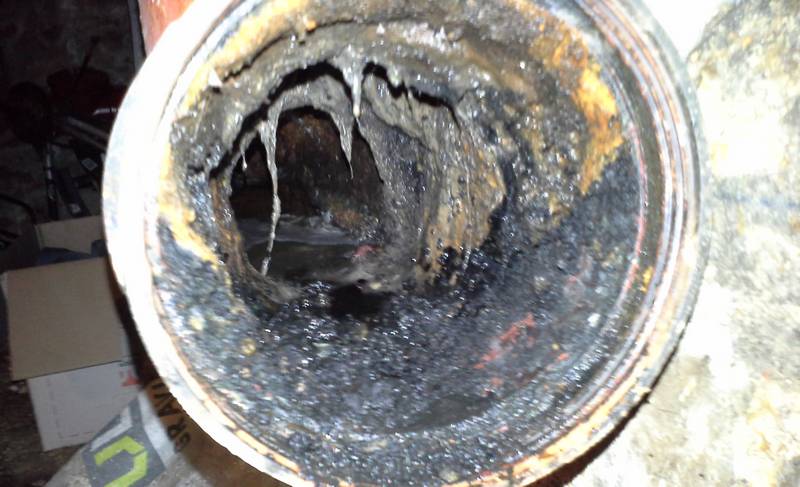 On peut constater un dépôt de tartre et autres saletés déposés dans le tuyau dans la zone morte (zone de non circulation d’eau), il est impératif d’enlever toutes ces saletés, moi j’utilise un burin plat pour les piocher car généralement ces saletés son cristallisées et fortement incrustés.