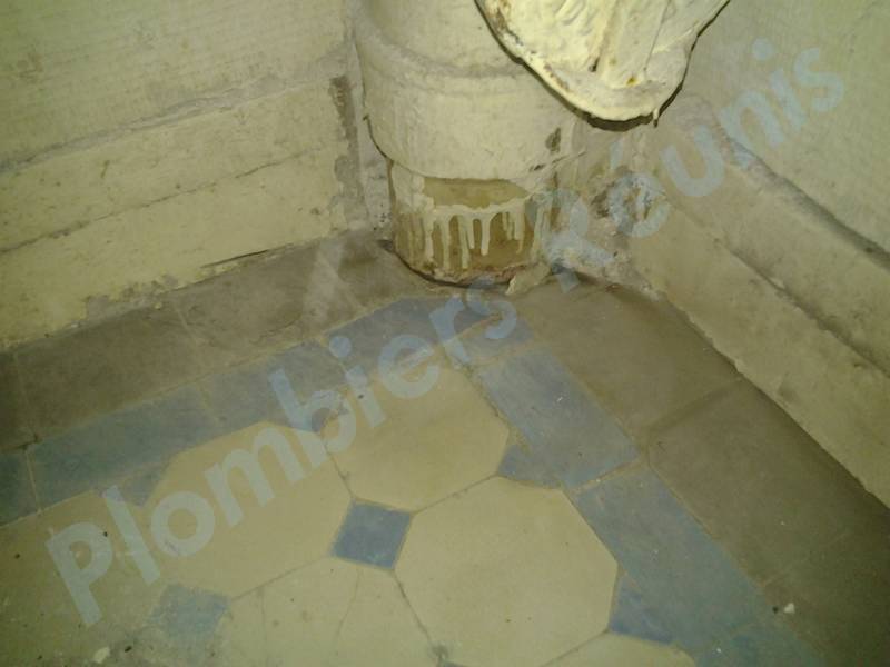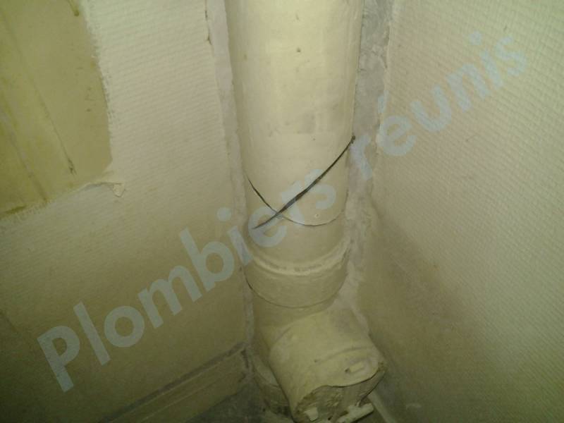 Le syndic a envoyé un plombier et il s’agit d’un stagiaire qui a fait un travail nul : il a mis du ciment sur les jointures sans gratter la partie inférieures.