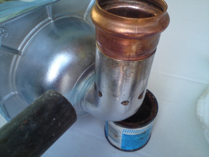 La soudure du manchon-rex sur le siphon de sol, est la première étape de ce raccordement.