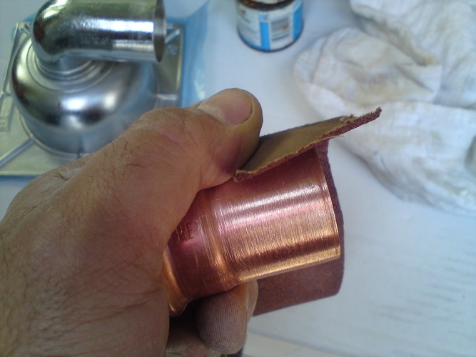 Donc premièrement il faut bien poncer les deux parties a souder avec la toile émeri ou papier abrasif, surtout bien poncer, la propreté est le point crucial de cette soudure.