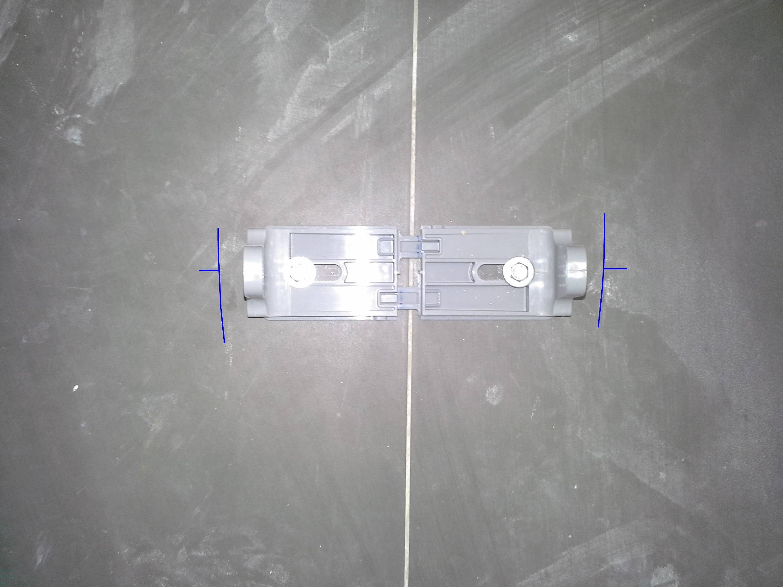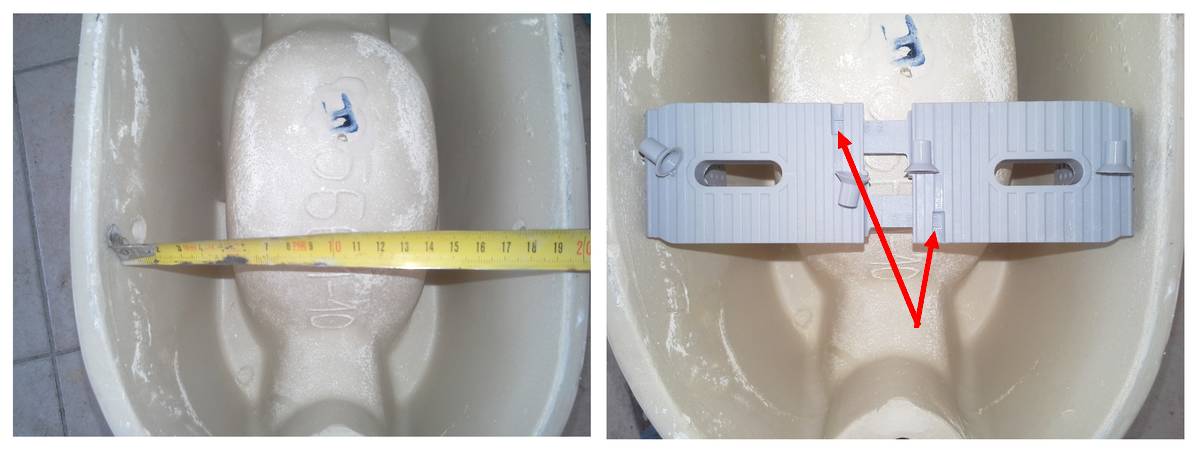 Ensuite il faut mesurer la largeur intérieure du pied de la cuvette et ajuster les équerres en fonction, « je conseille de laisser 5mm de jeu ».