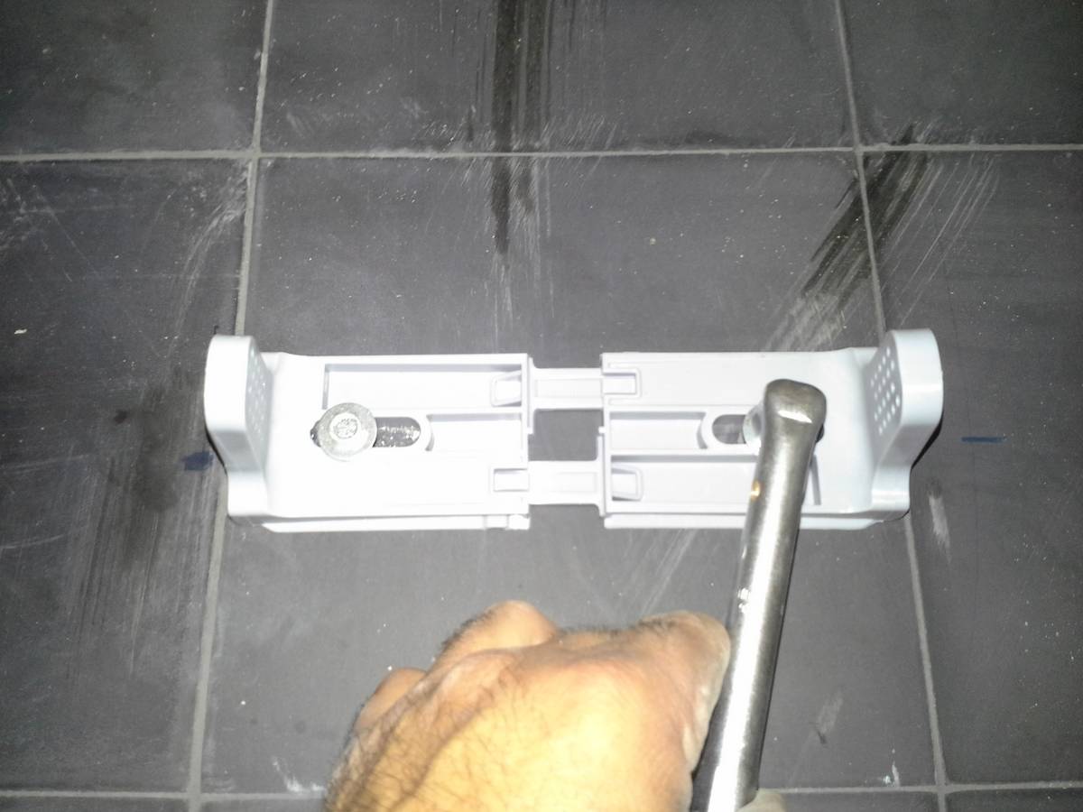 Dans un premier temps nous allons ajuster les pattes a la largeur de la cuvette, pour ce faire… le plus simple est de retourner la cuvette avec la base vers le haut.
