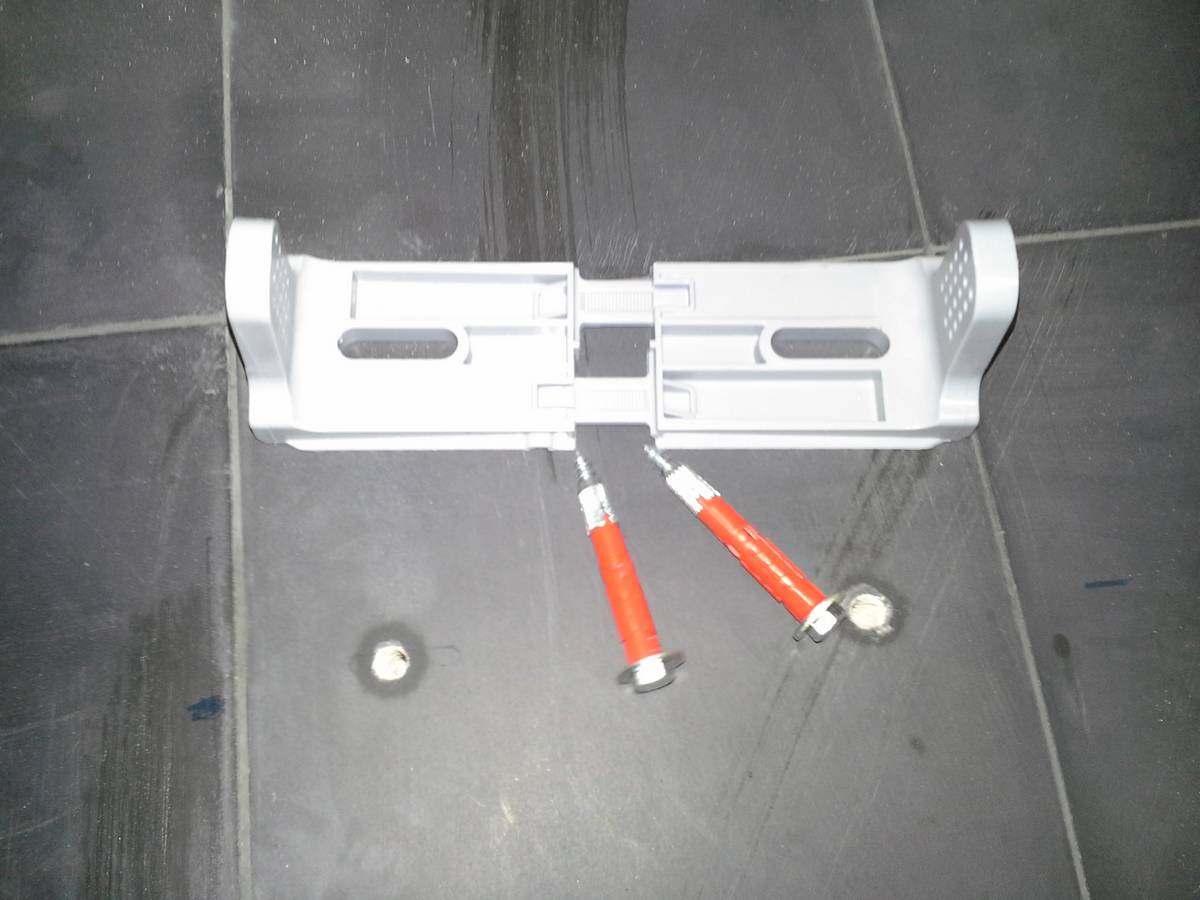Je profite de cet article pour féliciter le fabricant des fixations de sol, il fallait y penser, c’est très ingénieux, les fixations peuvent s’ancrer sur n’importe quel support. Lorsque le serrage est effectué il faut poser la cuvette dans son emplacement final.
