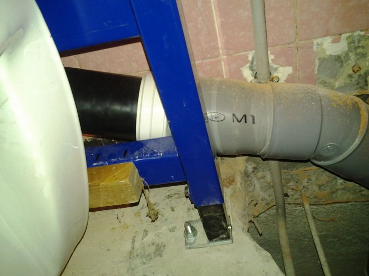 La version murale – Les bâtis supports geberit sont livrés avec une pipe coudé en Ø90 qui est fabriqué dans une matière graisseuse, qui ne peut être collé avec la colle pvc standard, encore moins avec du silicone comme certains le font, il est donc indispensable d’utiliser un manchon d’adaptation qui permets d’utiliser plusieurs diamètres, il est même possible de se brancher directement dans un tuyau de Ø100 grâce a son adaptation de Ø93.