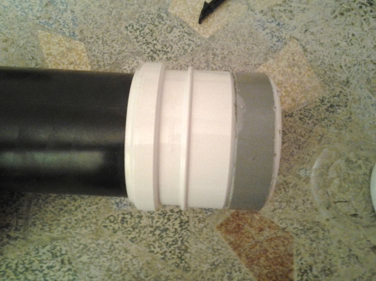 Dans mes installations j’utilise lorsque c’est possible une évacuation en Ø100 femelle, donc je colle une bague sur le manchon d’adaptation afin d’améliorer sa résistance.comme on peut le voir sur l’image suivante.