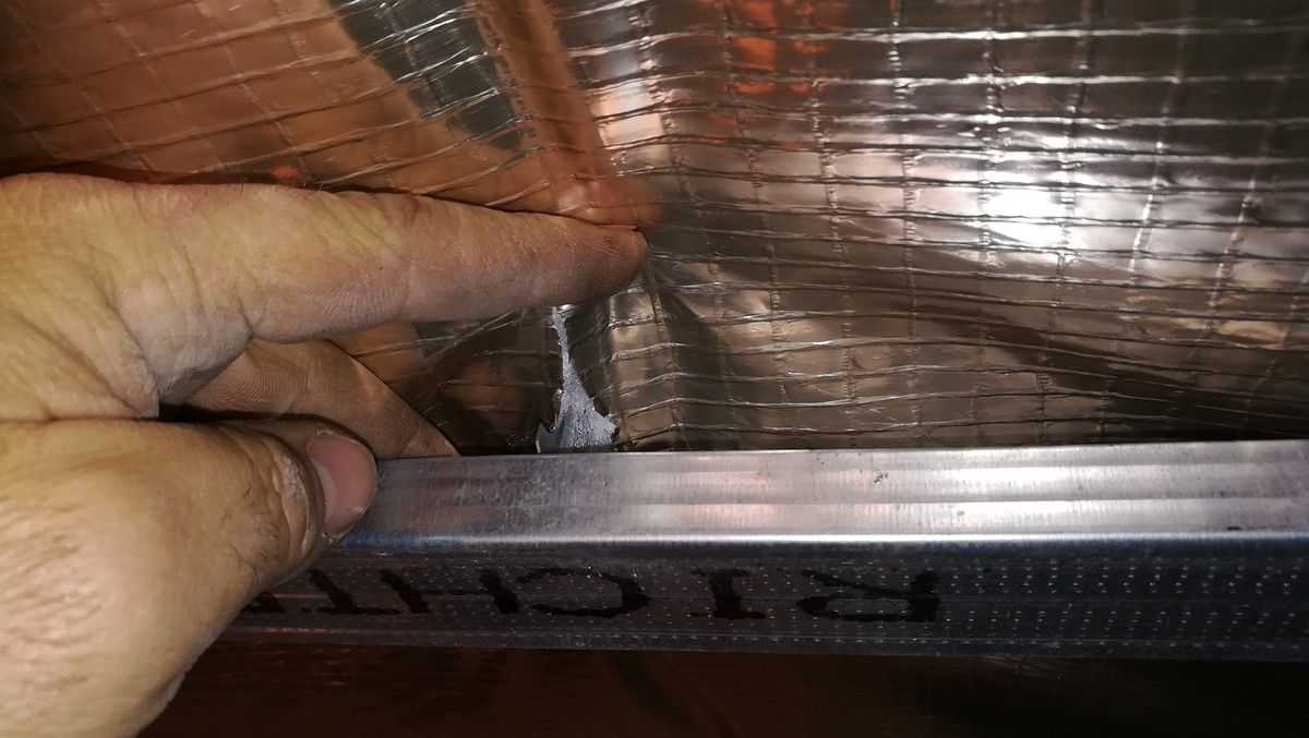 Il est préconisé de faire un retour de 5 cm sur les cotés, puis de fixer ce retour avec un liteau, pour ma part j’ai essayé de fixer avec la cornière en périphérie, jusque la c’est bien, mais quand la cornière doit être fixé sur des plaque de plâtre, c’est vraiment pas top.