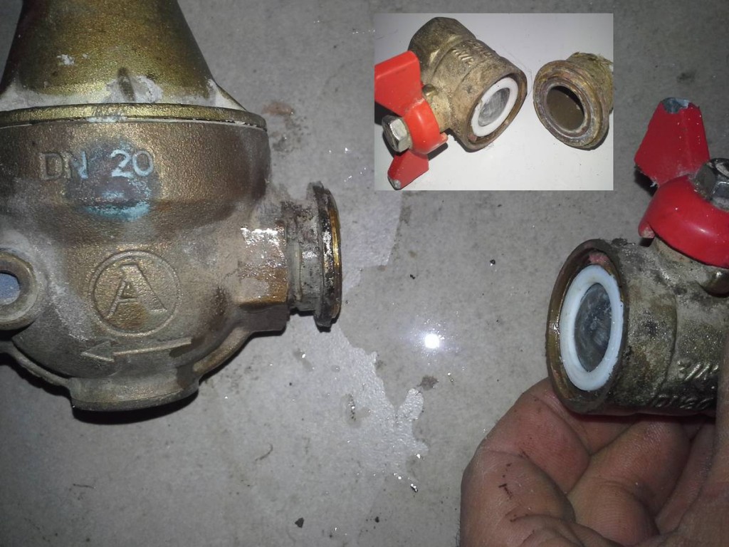Dans l’image suivante on voit une vanne qui s’est cassé net, elle était monté sur une arrivé d’eau, encore heureux elle a commencé a fuiter tout doucement  ce qui a permis de détecter le problème et de remplacer la vanne avant que la fuite ne s’aggrave.