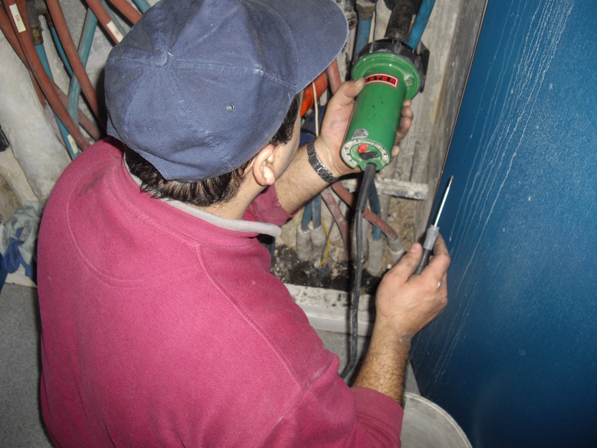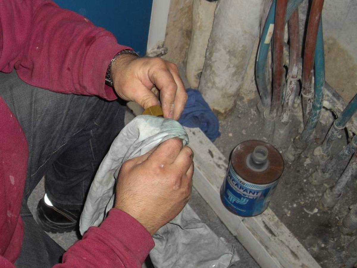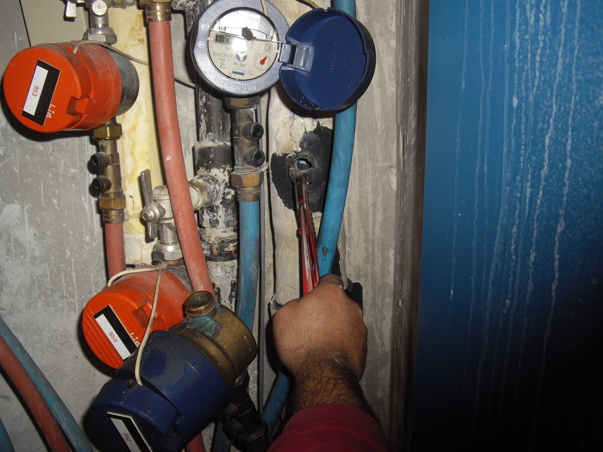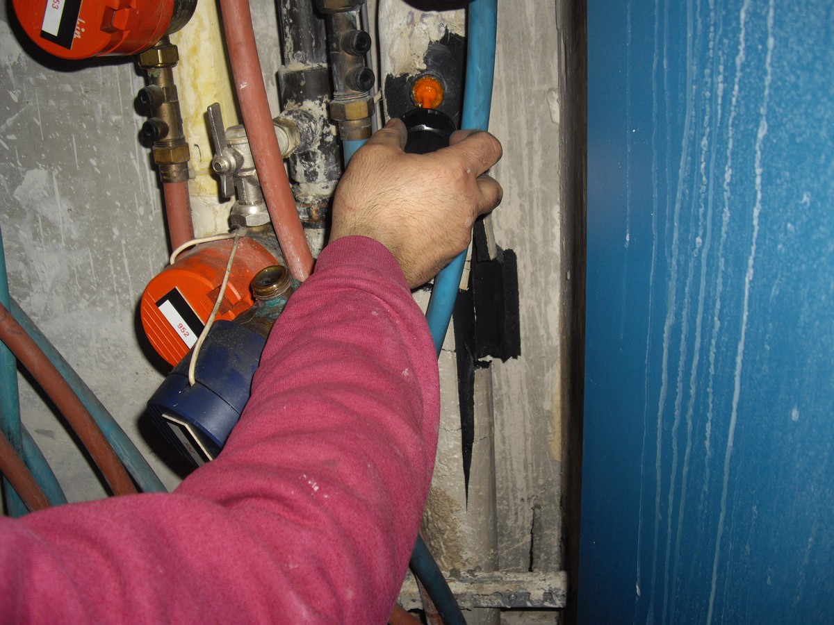 Avant toute intervention il est indispensable de couper l’eau, dans ce cas précis il existe trois colonnes qu’il faut couper, autrement on aura toujours de l’eau qui viendra parasiter le travail.