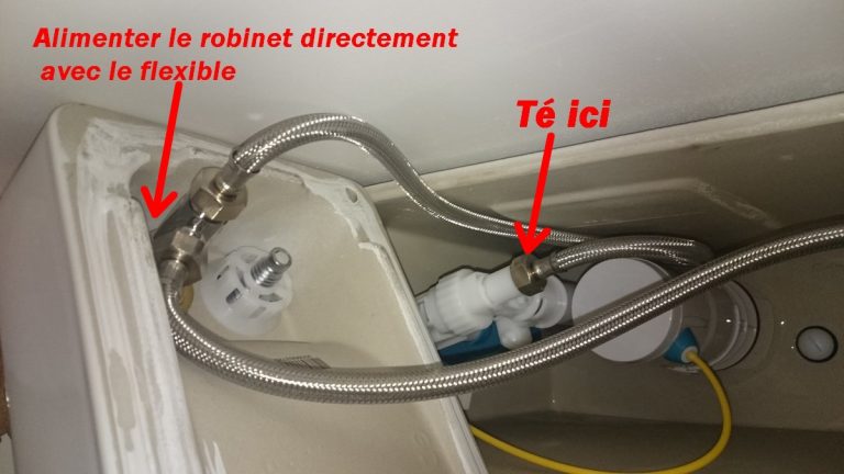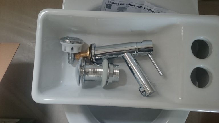 Après avoir changé le té de place, contrairement a la notice j’ai fini par obtenir un fonctionnement parfaitement normal. Le mécanisme de chasse d’eau se clipse directement sur le bouton de commande, il suffit de presser un petit bouton pour le dé-clipser, c’est assez judicieux et bien fait, je pense qu’il n’y aura aucun problème dans le temps a ce niveau. Lé mécanisme de chasse d’eau semble aussi de bonne qualité.