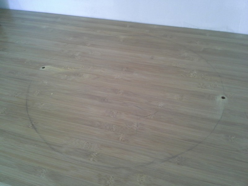 Maintenant que nous avons le trait qui représente la coupe, c’est le moment de percer afin d’insérer la lame de scie sauteuse. Dans ce cas precis la coupe est ronde, donc deux percement suffisent, mais dans le cas d’une coupe carré il est plus facile de faire une percement a chaque coin.Veillez tout de même a percer avec un diamètre assez important pour que la lame de scie passe dedans.