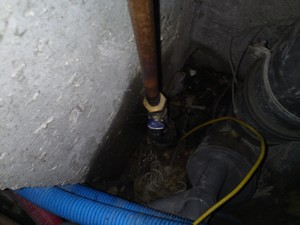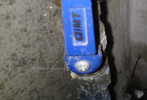 J’ai du intervenir pour la réparation d’une fuite chez un particulier, après repérage voici ce que j’ai trouvé. Une installation faite en cuivre et avec des tuyaux PER, une vanne  laissé a l’intérieur de la gaine technique raccordé avec des joints. Du coup j’ai été obligé d’ouvrir la gaine pour réparer. Sur l’image de la vanne on aperçois le jet d’eau contre le mur.
