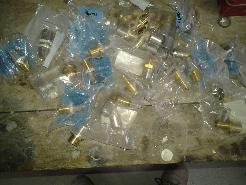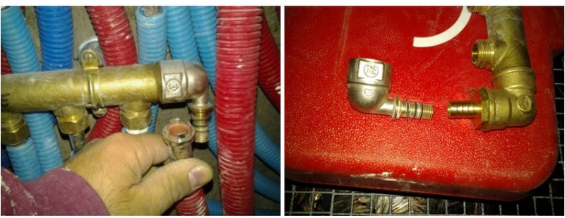 Dans les images juste au dessus on peut constater que nous avons utilisé plusieurs sortes de raccords, parce que n’est pas facile de trouver toujours le raccord adapté toujours de la même marque, nous avons utilisé des raccords: giacomini, oventrop, comap, riquier adrien, grip, et d’autres sans marque.