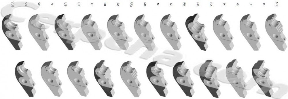 Chaque fabricant de raccords, recommande pour le sertissage de ses raccords une pince de type H, Th, F, U, etc…, ils sont nombreux les types de profils, ici nous faisons référence aux plus utilisés.