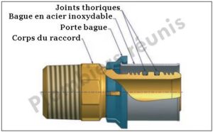 Contrairement a ce que l’on peut penser, les raccords destinés au multicouche ne sont pas identiques a ces pour le PER, ils se différencient par la présence de joints, sur la partie emboîtable.