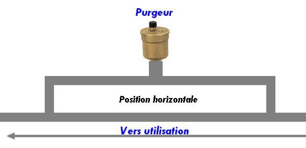 Dans cette image ci-dessus il est indiqué que le tuyau doit être en position horizontale, mais d’autres type de configurations sont possibles, il est même possible d’utiliser un séparateur d’air du commerce.