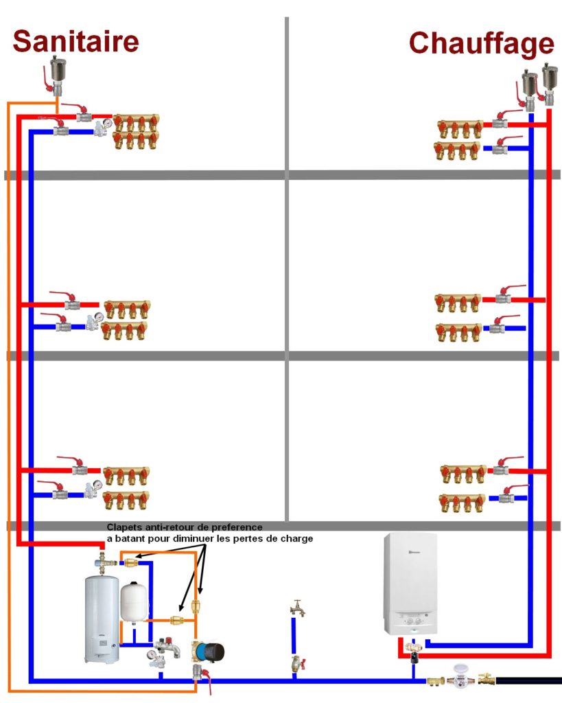 Le tracé orange équivaut au bouclage, bien entendu ce bouclage n’est possible que sur l’eau chaude accumulé, il ne fonctionne pas sur chaudières a production instantané.