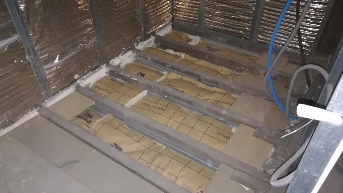 Dans les pièces de petite surface, il est parfois utile de poser une couche de wedi sur la totalité de la pièce, j’ai fait cette réalisation dans cet article, ou la totalité du plancher était déjà plus bas 6 cm que les autres pièces.