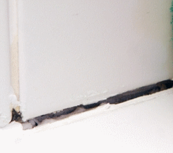 Avec le temps la pellicule de silicone situé sur les parties latérales du joint se décollent du support, ce qui laisse des micro espaces entre le joint et le support.