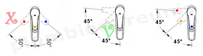 Nous partons du principe que nous ouvrons le robinet avec la manette en position la plus accessible, soit orienté vers l’utilisateur.