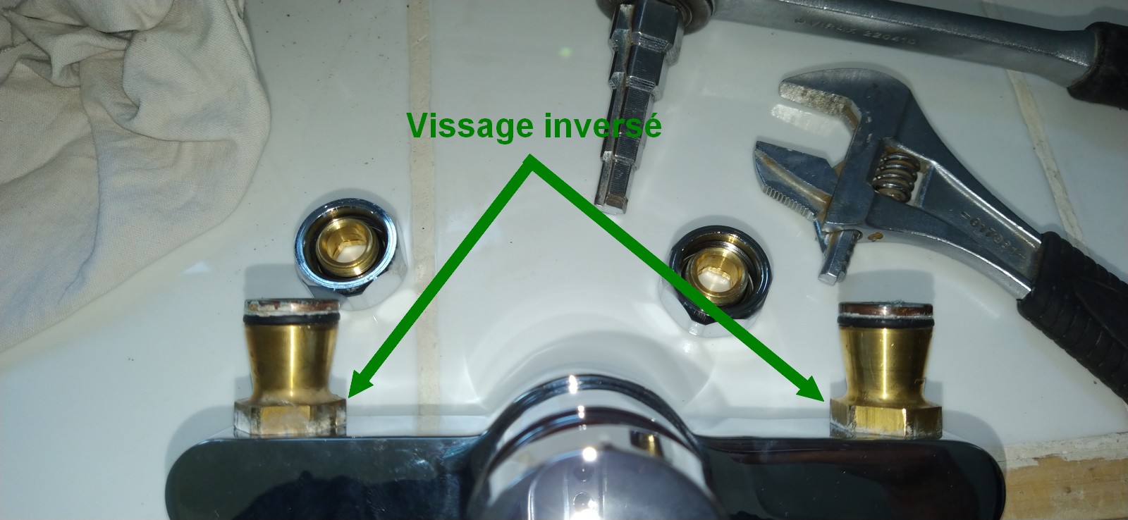Dans un premier temps j’ai démonté les écrous montés sur le nouveau robinet a l’aide d’une clé BTR de 12mm.